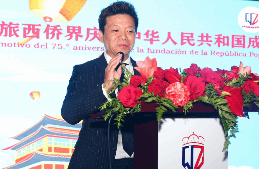 西班牙温州同乡会会长郑晓光首先对在场的各位嘉宾和朋友表示热烈的欢迎和衷心的感谢。他表示,今天的晚会不仅是庆祝中华人民共和国成立75周年的重要时刻,也是中秋佳节团圆的美好时刻。郑会长回顾了新中国75年来的发展历程,指出祖国经历了从站起来、富起来到强起来的伟大历程,取得了举世瞩目的成就。他激动地表示,每一个中国人都为自己祖国的繁荣昌盛感到无比自豪。我们身居海外,但始终心系祖国,与祖国同呼吸共命运。他赞扬旅西华侨华人在推动中西两国经贸和文化交流方面作出的重要贡献,特别是在促进华侨事业发展方面所作出的努力。郑会长强调,中秋节是团圆的象征,通过今晚的慈善晚会,希望能够凝聚旅西侨胞的爱心与力量,帮助更多需要帮助的人,同时也促进侨社的和谐与发展。他最后表示,西班牙温州同乡会将以促进中西友好交流为己任,秉持团结互助、共同发展之精神,服务侨胞、推动侨界和谐进步,为进一步推动中西两国在经贸、文化、教育领域的合作贡献力量。