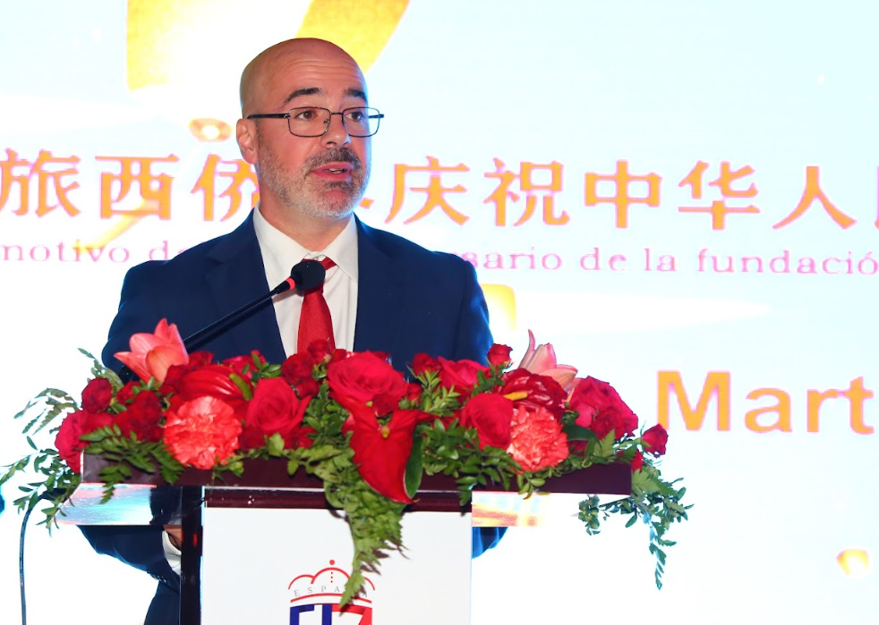 西班牙中央政府驻马德里自治区代表Francisco Martín Aguirre先生在致辞中首先对晚会的举办表示祝贺,对西班牙温州同乡会为中西文化交流和商业合作所做的贡献给予了高度评价。他提到,中华人民共和国成立75年来取得的辉煌成就,不仅对中国亦对全球都产生了深远影响。他赞扬中国侨民在西班牙的积极融入和贡献,尤其在推动经济发展和促进文化交流方面所作出的努力。中秋节不仅是中国的传统节日,也是一个强调团圆和家国情怀的时刻。他表示,今晚的慈善晚会不仅体现了对历史的尊重,也展示了对未来的展望。他呼吁大家继续携手合作,共同应对挑战,为社会的弱势群体提供更多支持和帮助。