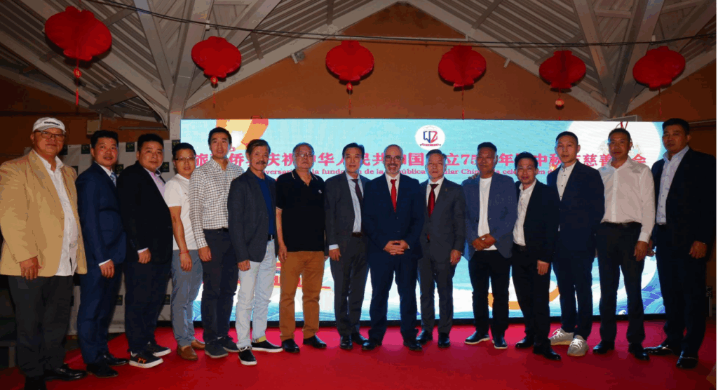 中国驻西班牙大使馆杜娟公使衔参赞、孙丽丽警务参赞、张进领侨处主任,中央政府驻马德里自治区代表Francisco Martín Aguirre先生、马德里市议会主席Borja Fanjul Fernandez-pita先生、LEGANES市长Miguel Ángel Recuenco先生、FUENLABRADA副市长Soledad Martin女士、LEGANES副市长María Estévez女士、西班牙中小企业协会主席Salvador Bellido Macías先生、PP党Usera区主席José Miguel Blanco先生,工业区管委会主席Javier Perez Martínez先生与旅西侨界代表共300余人,欢聚一堂,共庆中国国庆和中秋佳节。